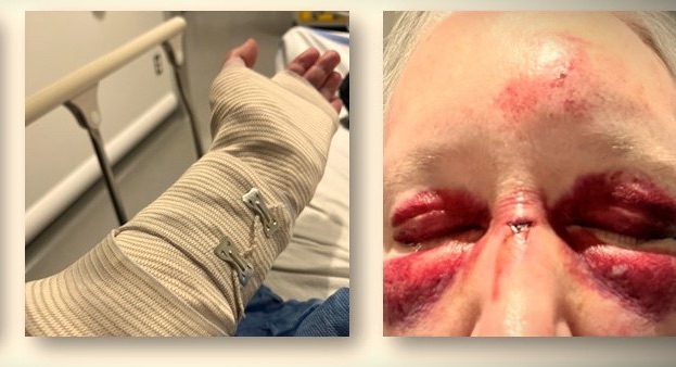 My own state of emergency likewise persists. In June, on the penultimate day of my visit with family and friends in Ontario, I collapsed while walking across a laneway at a Cambridge ONroute. The pictures below may speak a thousand words about the immediate aftermath of my free fall onto sunbaked concrete, but they leave the day-to-day, week-to-week, month-to-month recovery to your imagination and my lived experience. Suffice it to say that a fall of this magnitude has myriad repercussions.